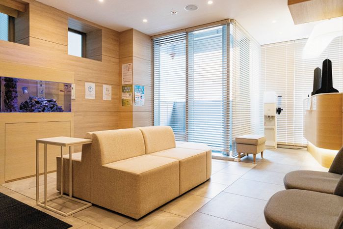 新たにフロアを増設。白と木目を基調とした待合室は開放的な空間で、光が差し込み温かみのある明るい雰囲気
