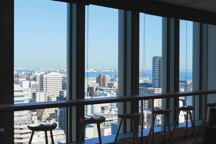 大きな窓からは三宮を始め神戸市街が一望できる落ち着いた雰囲気の待合スペース