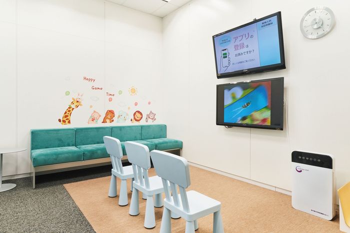 診察室があるフロアとは別の階に、キッズルームを設けています。部屋にはモニターがあり、番号で呼び出しされるので安心。また、近隣の託児所・保育園をご利用の場合には、ご利用料金の一部をキャッシュバックさせていただくサービスもございますので、二人目不妊のかたも気兼ねなく受診できます。