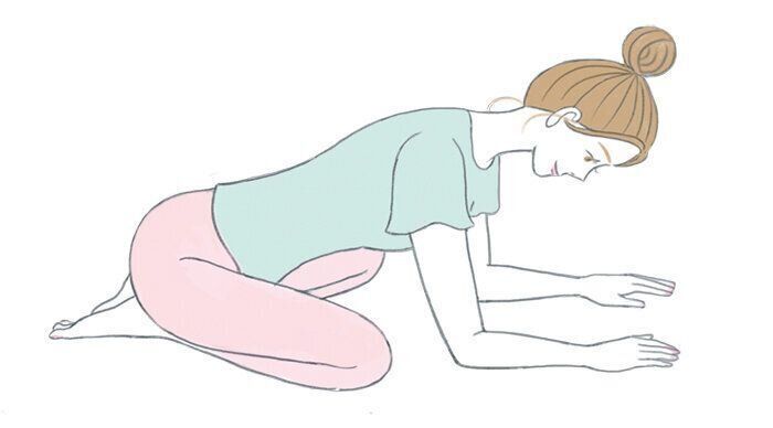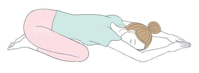 このポーズは、ひっくり返すと分娩のときとまったく同じポーズになります。血流を促し、着床しやすいふわふわな子宮と卵巣がめざせます。ひざを痛めている人は無理をしないように。