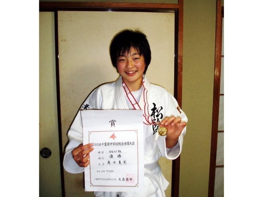 中学2年生の角田さん。初めて優勝を経験して、勝つことの楽しさを知りました