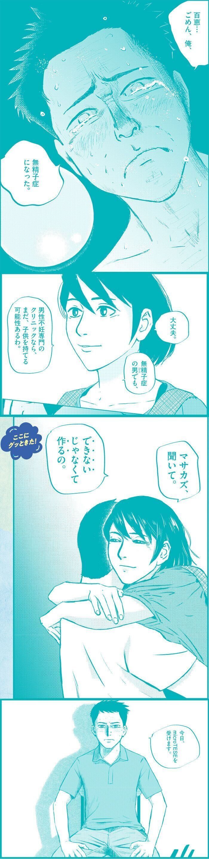 あるきっかけでマサカズは無精子症に。それでも百恵は悲嘆する姿を見せず、妊活から不妊治療に進むことを提案します。前向きな百恵に引っ張られ、マサカズもステップアップを決意!2人の不妊治療はここからスタートします。
