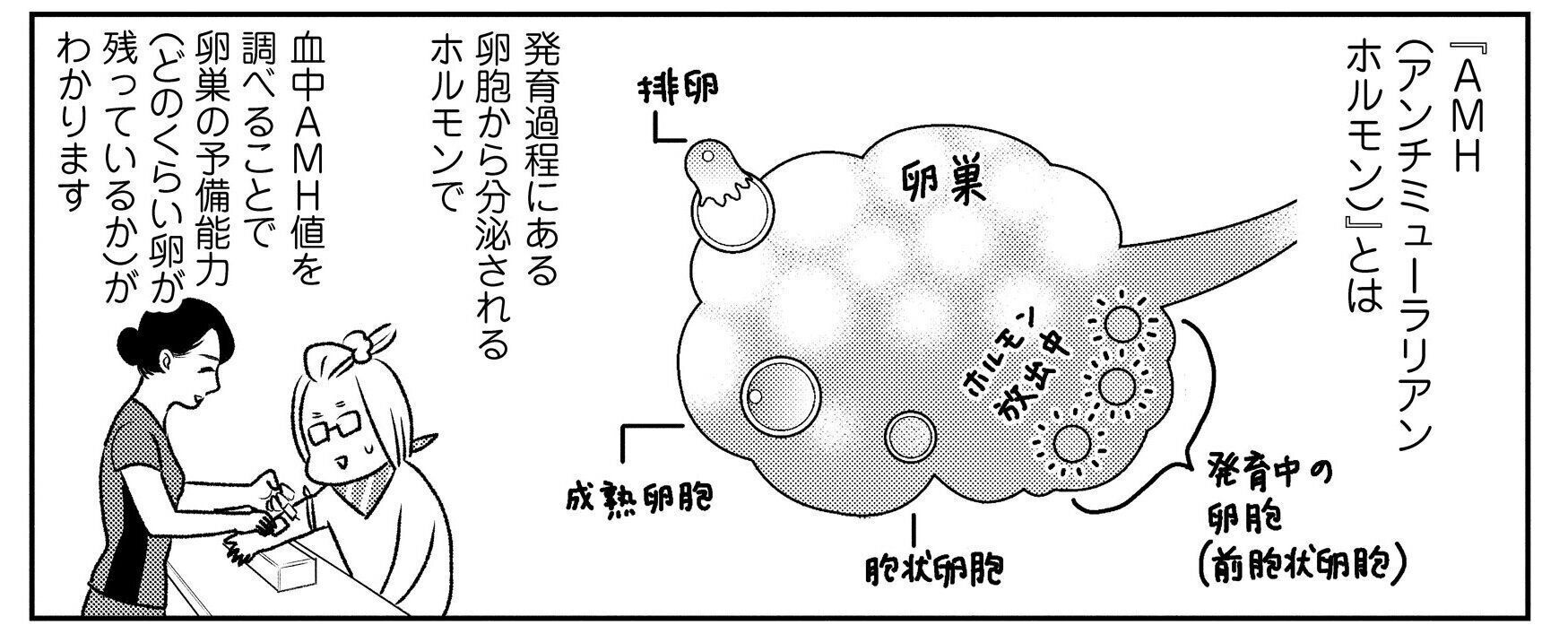 藤本 卵巣の機能がわかる「アンチミューラリアンホルモン(AMH)」の値を調べることですね。私が調べたのは2人目の不妊治療のときだったのですが、38歳の中央値(※3)が2なのに、私はわずか1.15とかなり低いことがわかりました。同年代でもAMHが7や8と高い人もいるので、年齢は関係ないんだなと感じました。もちろん数値がすべてではないのですが、数値が高ければ「もう少しタイミング法を続けてみよう」、低ければ「短期決戦でいこう」と、ある程度の治療の指針になるので、ぜひおすすめしたいなと思います。