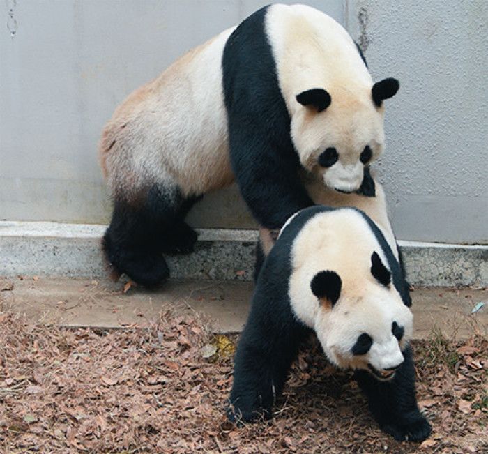 単独行動の上、生息域に対して頭数が少ないので、そもそもパートナーに出会いにくいパンダ。さらにメスの発情期間が年に数日ととても短いのに、オスはメスの発情に気づきにくいのです。しかもメスもいい遺伝子を残したいので、選り好みがあるとのこと。ちなみにパンダは後背位で交尾するため、上野動物園ではオスの脚力を鍛えようとスクワットさせたそう!
