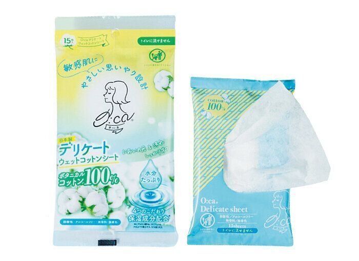 ニオイのもとや汚れをしっかりふき取る、ボタニカルコットン100%のデリケートゾーンシート「O:ca(オーカ) デリケートウェットコットンシート」/大一紙工