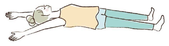 両手と両足を大きく伸ばし、肩やおなかの力を抜いて全身を解放するようにリラックスする