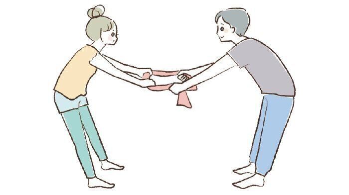 <5>【男性・女性】タオル1本をカップルで使って上半身と下半身の血流を促す