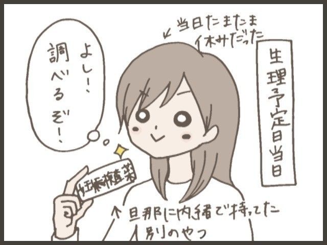 でもこれがたまたまなのか、妊娠しているから陽性なのか結局分からず、早く妊娠検査薬で調べたい!という気持ちにかられました。