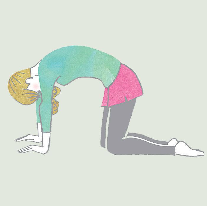 1 腰椎(背骨の腰の部分)→胸椎(背骨の胸の部分)→頸椎(背骨の首の部分)の順に背骨を動かして上体を丸める。