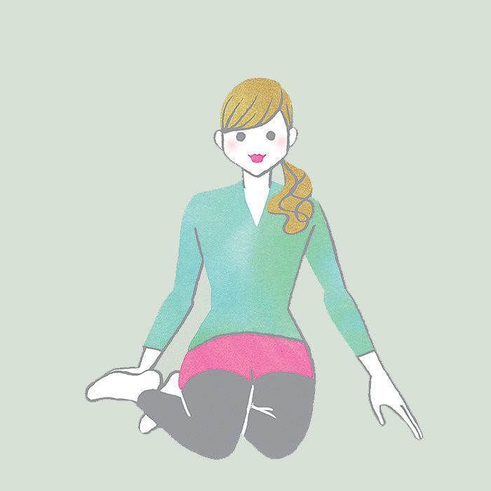 体側のストレッチで骨盤のゆがみを改善させます。足のポジションがきつい場合は、あぐら座などでもOKです。