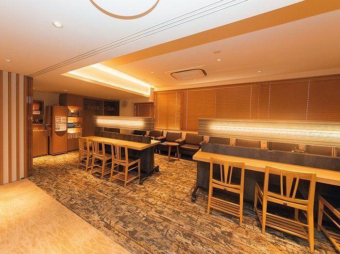 Wi-Fi完備で仕事もできるカウンター席、大画面TVを見ながらのソファ席など、待ち時間が気にならない工夫が。フロア内にはフリードリンクマシーンなども!
