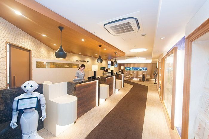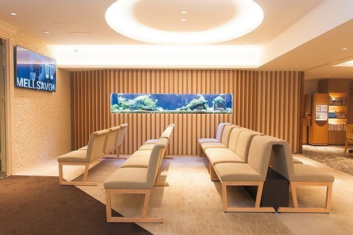 静かに流れるBGM、水槽の中をゆったりと泳ぐ魚が見られるなど、クリニックとは思えないほどの優雅な空間が印象的。