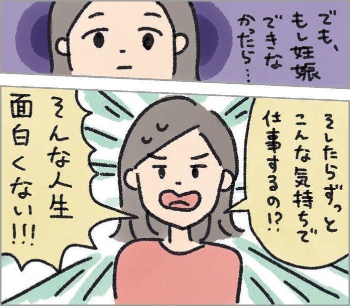 「もし妊娠したら、このプロジェクトは担当できない」「子どもができなかったら、一生このモヤモヤした気持ちを抱えなければいけないのかな」などさまざまな思いが去来して、仕事に本腰を入れられない日々が続きました。