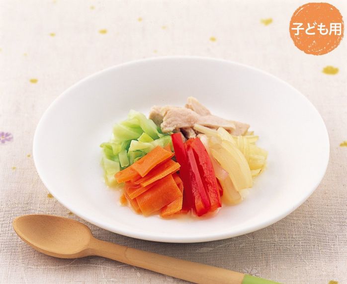 そんな電子レンジの特徴を生かして、大人用から途中で取り分けて、簡単に子ども分が作れるレシピのなかから、今回は「野菜と豚肉のレンジ蒸し」をご紹介します。
