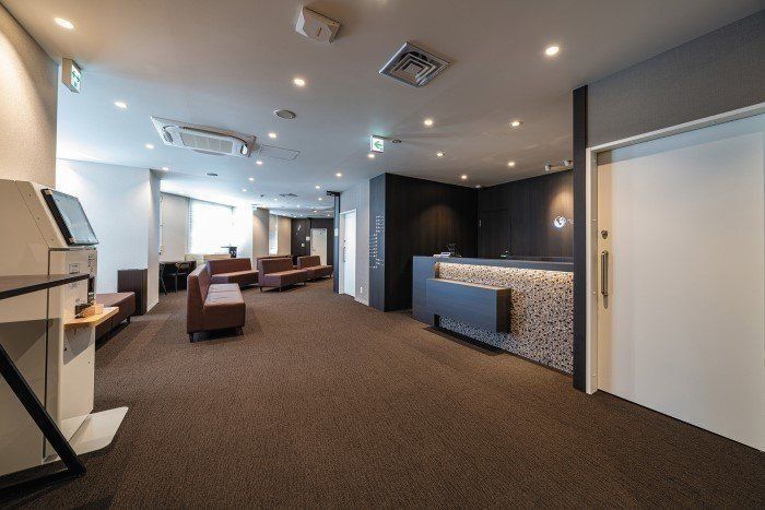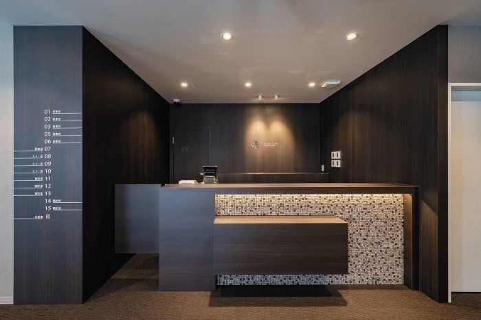 エントランス入ってすぐ左側の受付と待合室。落ち着いたインテリアが居心地よく、ゆったりと過ごせます