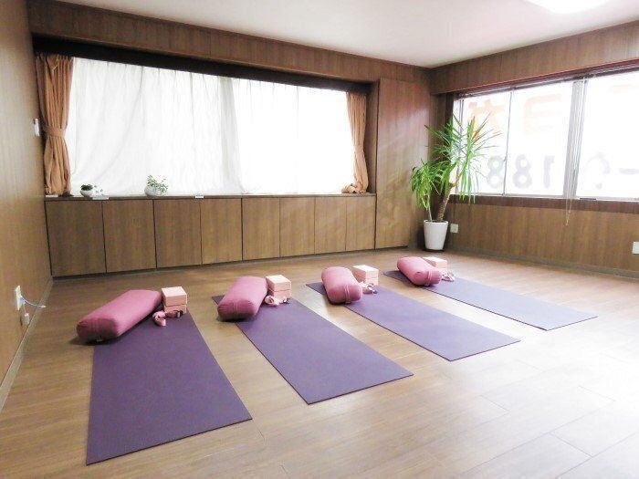 鍼灸院と同じフロアにヨガスタジオを併設。駅徒歩1分とは思えない落ち着いた雰囲気の室内。