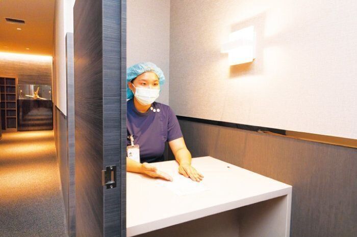 今回、取材した「はらメディカルクリニック」では、ホテルのチェックインカウンターのようにリラックスできる工夫がされています。