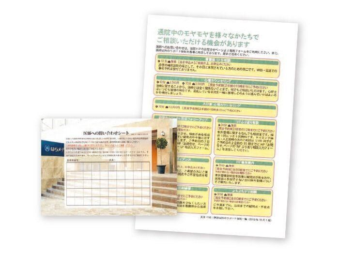 診察時に聞きたいことをあらかじめメモしておく用紙や、カウンセリングの案内も用意されていました。