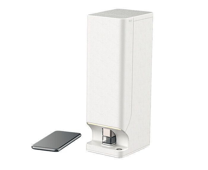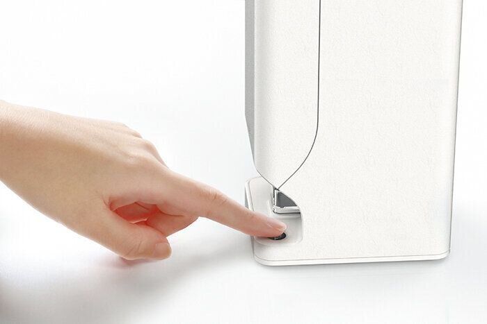専用ケースをサーバーにセット後、本体のセンサ部に指で触れ、自律神経のバランスを測定。20秒ほどで身体状態に最適なサプリの配合が反映される。