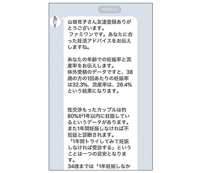 LINEを活用したパーソナル妊活サポートサービス「ファミワン」。
