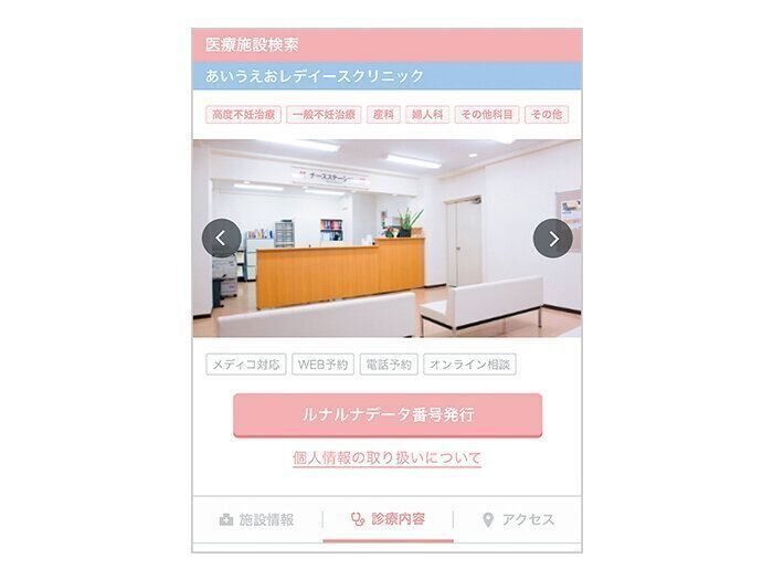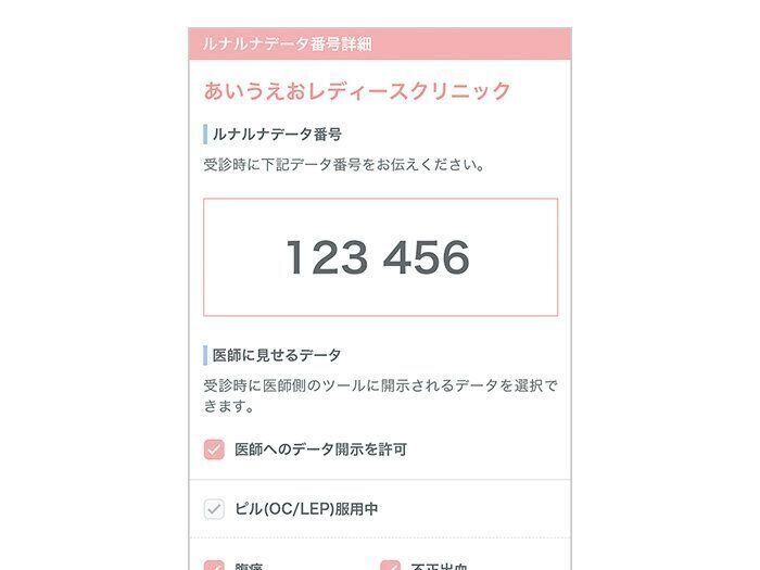「ルナルナ」で記録した月経周期や基礎体温情報。産婦人科の問診時に、それらを提示し、診療をスムーズに的確に行うサービス。「ルナルナ 体温ノート」「ルナルナ」のアプリおよび有料サイト、「ルナルナ スポーツ」のアプリから無料で利用可能。