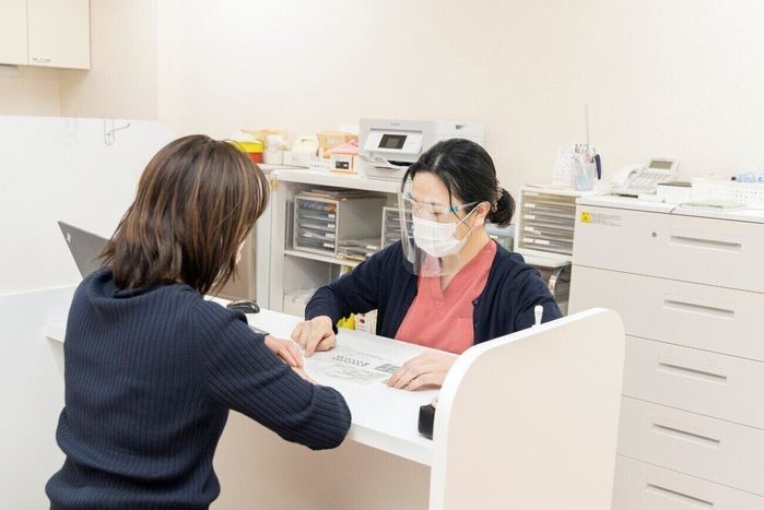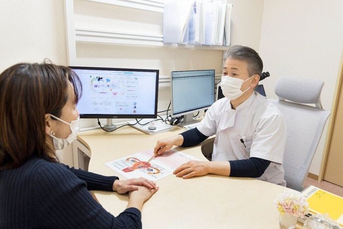 初診の場合、まずは専用フォームから検査履歴や治療履歴などを書き込むと、末吉院長からどのタイミングで受診すればよいか案内メールが届きます。医師本人からメールが来ることは驚きでもありますが、次に実際に受診をする際にとても心強いようです。さらにクリニックでは、看護師さんのヒアリング、院長の問診、血液検査、内診のうえ治療方針を決めていきます。待合室では、順番がわかる掲示板が表示されているのも親切。薬が出る場合は、看護師から別途改めて説明を聞きます。治療でわからないことがあれば、ここでもゆっくり看護師に質問することもできます。
