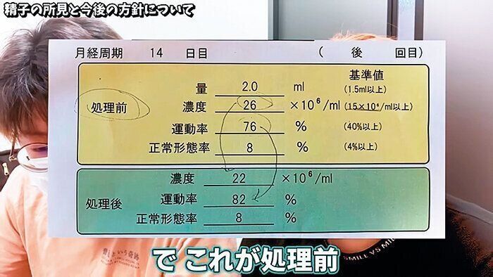 #濃度が少し低めだが基準値内、そして運動率がよいと言われました -