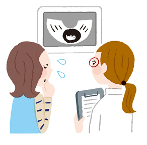 赤ちゃんの成長具合は超音波検査で確認することができます。赤ちゃんの頭の大きさや、心臓の動き、内臓の様子、推定体重などを調べます。医師がチェックして気になることがあれば、ほかの検査とも併せてチェックしたり、よりくわしい検査をして調べます。