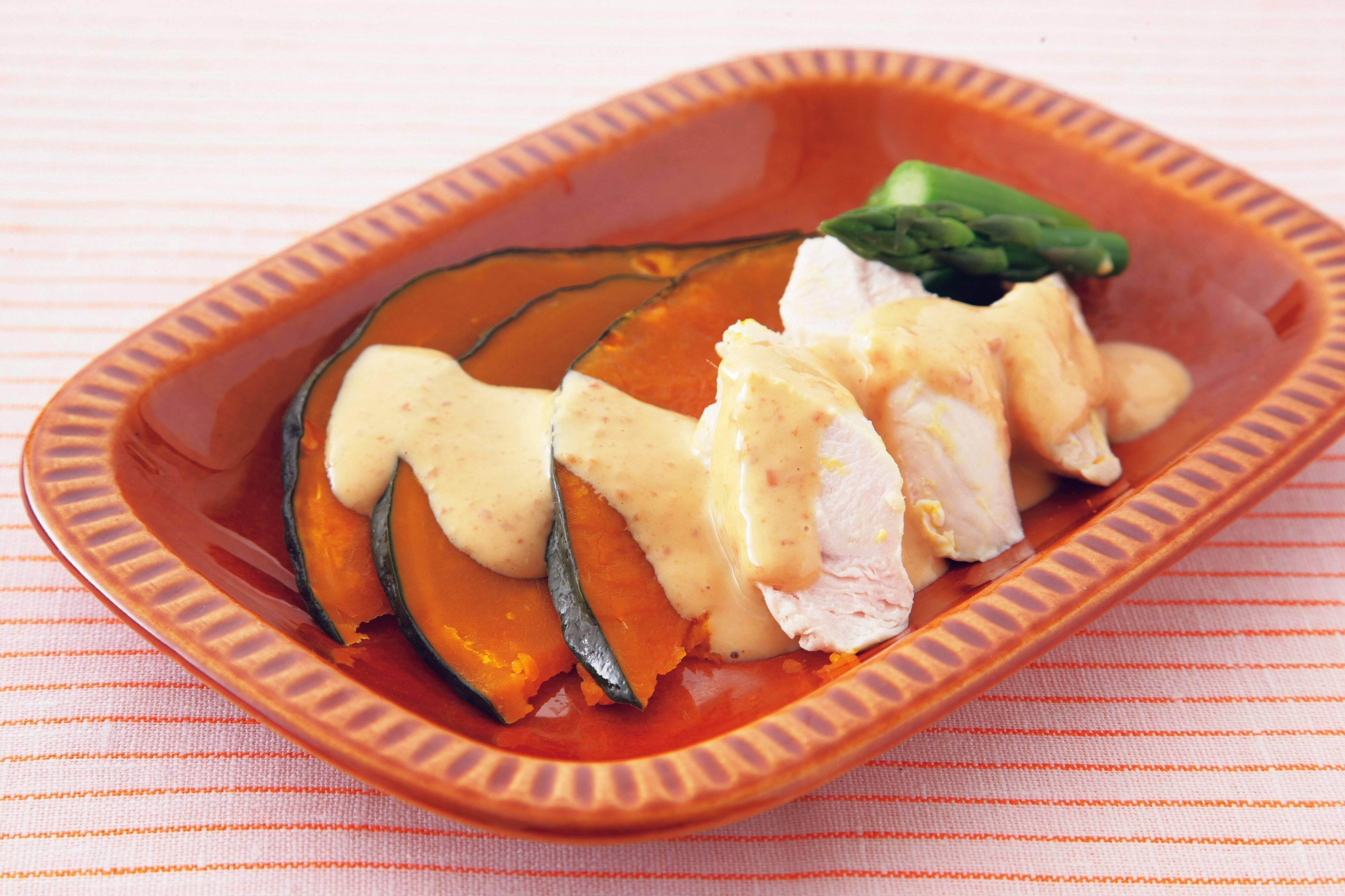 タンパク質豊富なささ身に、ビタミン類が多く含まれるかぼちゃを合わせたメニューです。電子レンジで手早くできます。