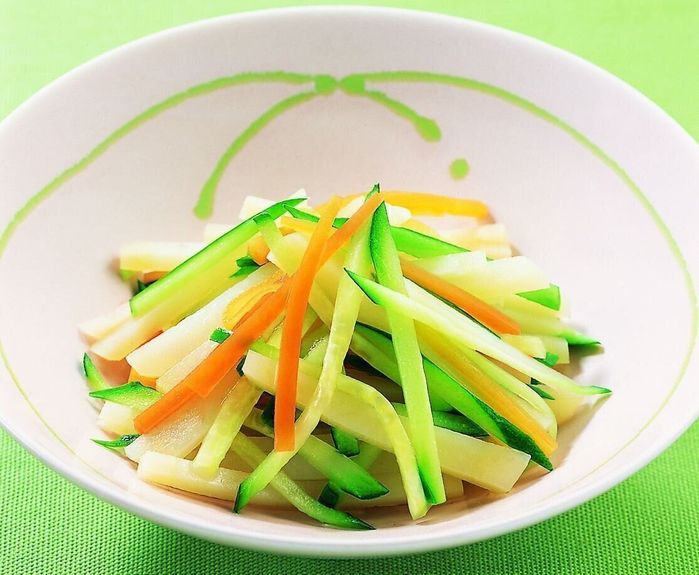 シャキシャキした食感と、さっぱり味のじゃがいもが新鮮なメニューです。