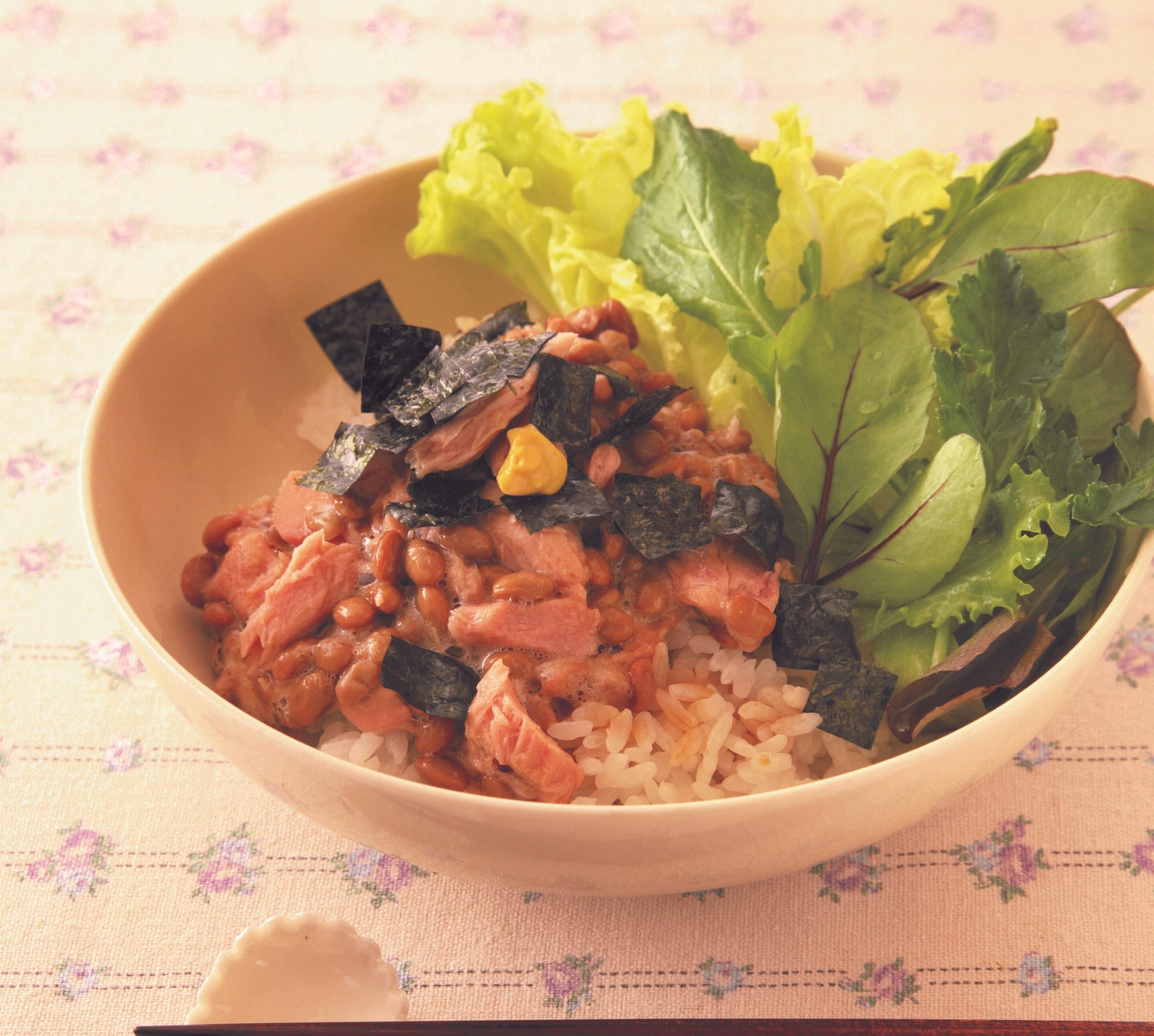 ツナ、納豆、のりのトリプル食材で鉄分がしっかりとれるメニューです。