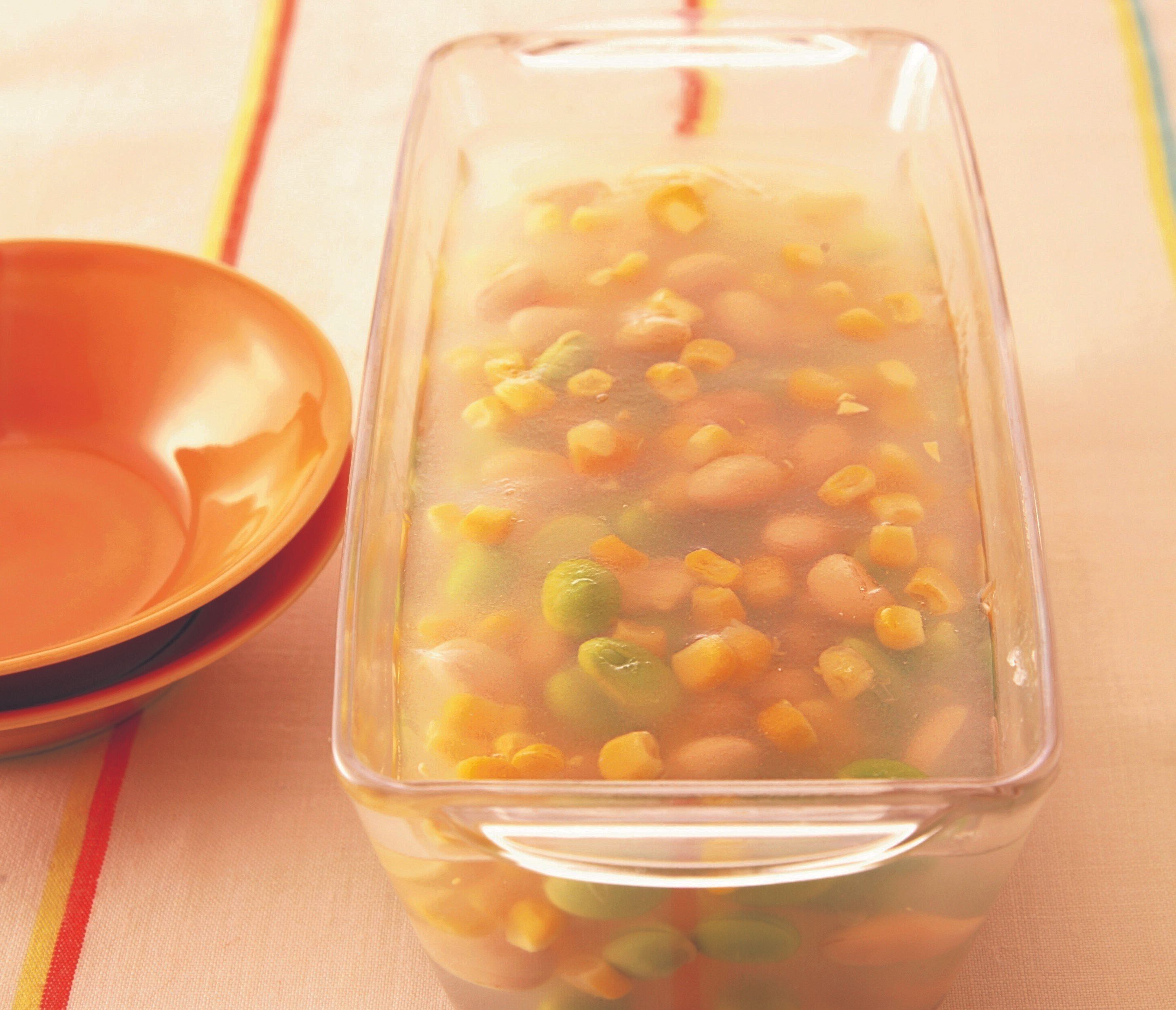 (2)(1)にコーン、枝豆、大豆を混ぜ込む。
