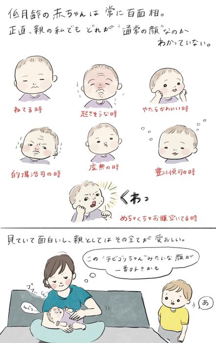 まぼ 生まれた瞬間から「きもがすわってるな」という印象でした。よいたんが約2500gで生まれ、しおさんが約2700gで、その200gの差で、かなりふっくら見えたせいかもしれません。