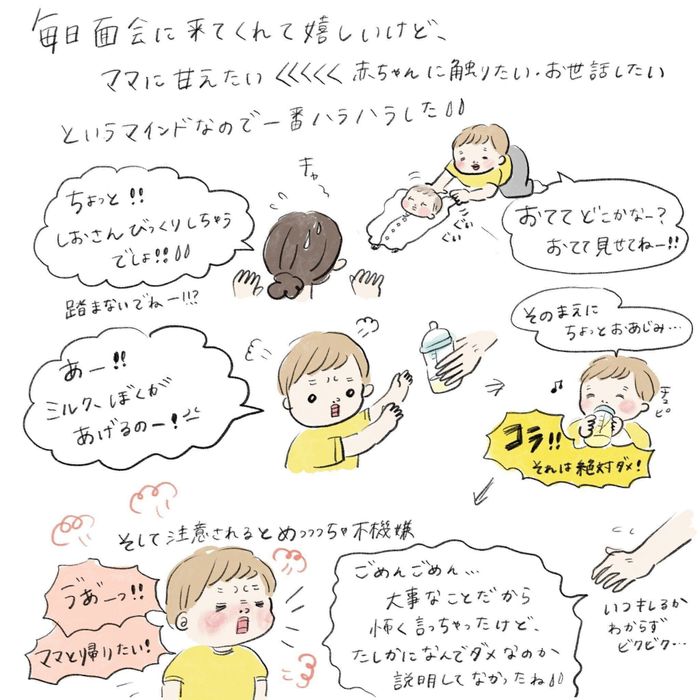 私が入院中、面会に来ても「ママに甘えたい」という気持ちよりも「赤ちゃんのお世話がしたい」という気持ちのほうが圧倒的に大きかった様子。