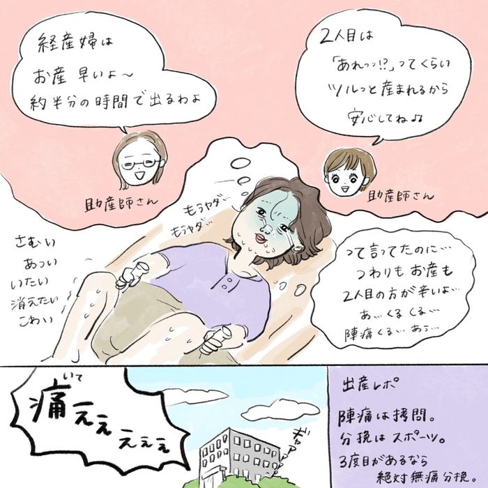 まぼさん(以下敬称略)「経産婦はお産が早い」「経産婦の陣痛は軽め」というようなことを聞いていたのですが、私の場合は、第1子よりも第2子のお産のほうがしんどかったです…。