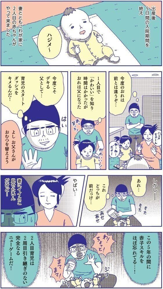 2児の父である宮川サトシさんの連載7回目。 妻が赤ちゃんとともに帰宅。早速、1人目のときの経験を踏まえ、イクメンとして即戦力になろうと意気込んでみたものの…。