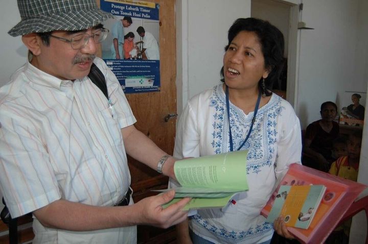 赤ちゃんの発育・発達やワクチン接種の記録などを書き込んでいく母子手帳。「常に携帯している」というお母さんも多いでしょう。では、「母子手帳はだれのもの?」と聞かれたら何と答えますか?母子手帳の研究と世界的な普及のために尽力されている小児科医の中村安秀先生に、この答えを教えてもらいました。(上の写真は母子手帳普及のために、中村先生が東ティモールの保健センターで活動されたときの様子)