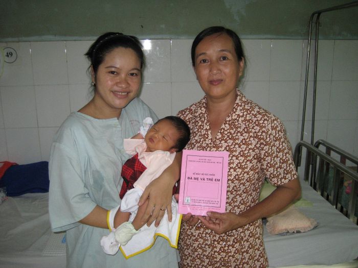 乳児健診に訪れたベトナム・ベンチェ省のお母さんとおばあちゃん。