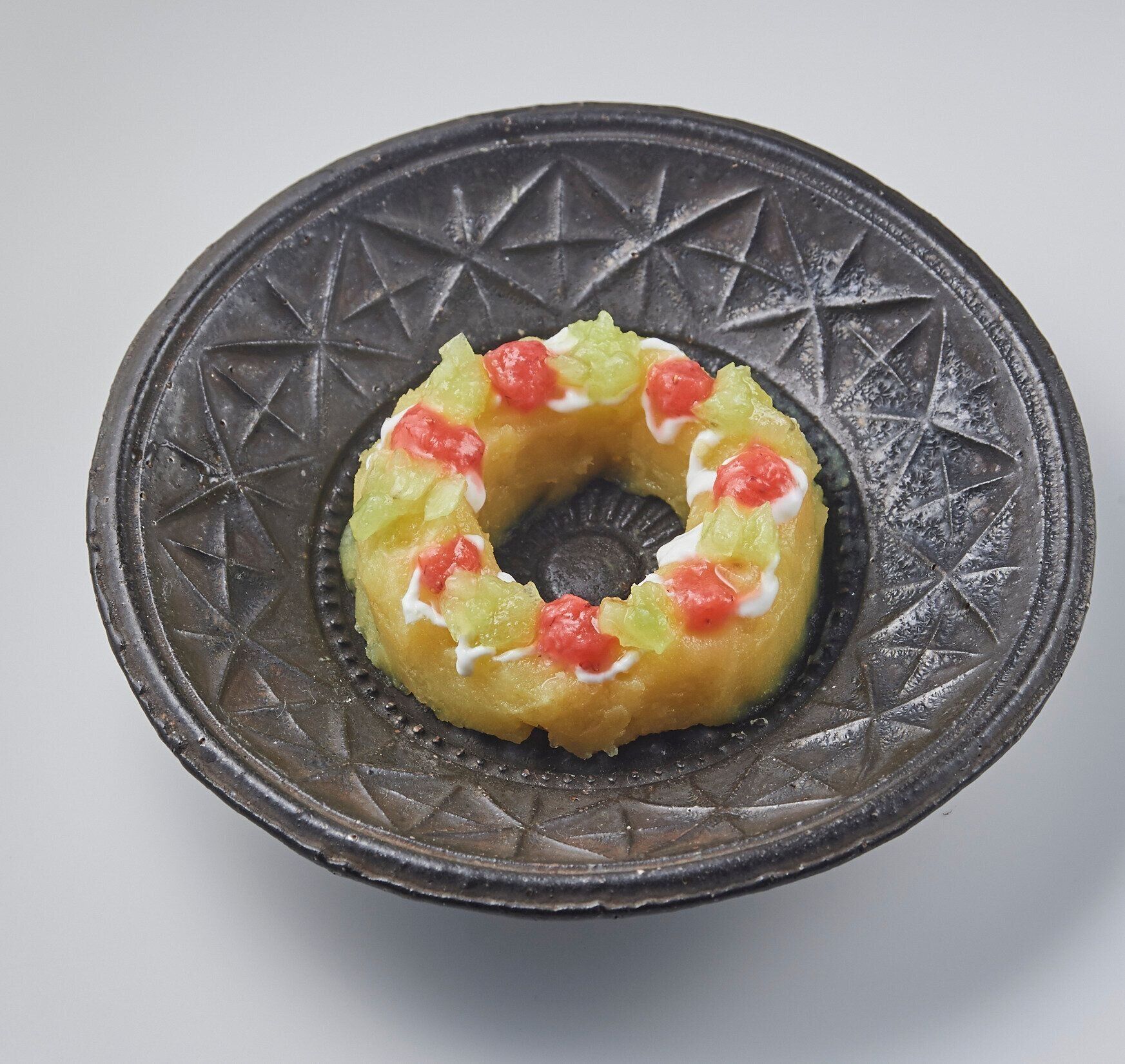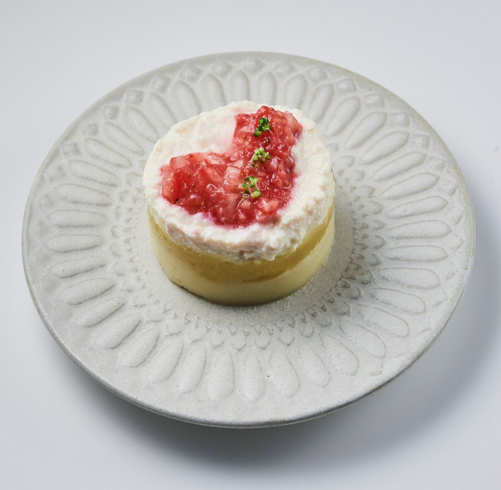 ペースト状にした数種類の食材を、セルクル型(筒状の型)に順に重ねて詰めてから、そ~っと抜くと、まるで大人用のケーキのような華やかさになります!
