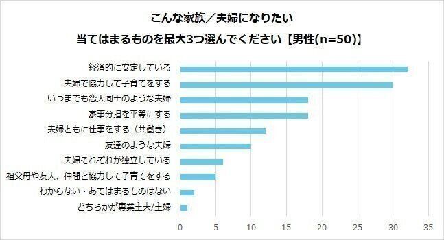 ――「どんな家族/夫婦になりたいか」を聞いたアンケート結果については、どう思われましたか? 最多回答は「夫婦で協力して子育てをする」、続いて「経済的に安定している」、「家事分担を平等にする」でした。