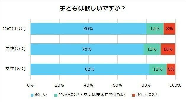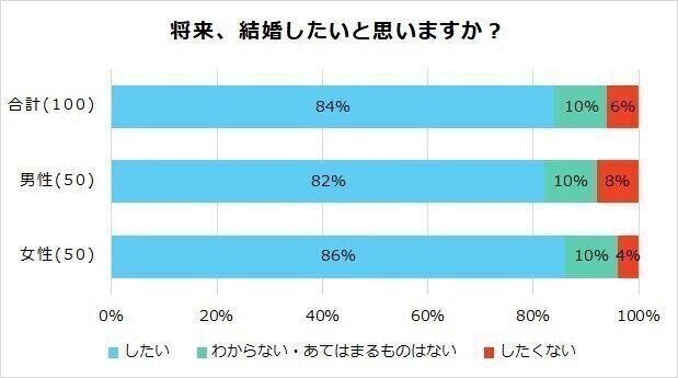 「結婚したい」84%、「子どもが欲しい」80%、という数字は思っていた通りの結果だな、と感じました。