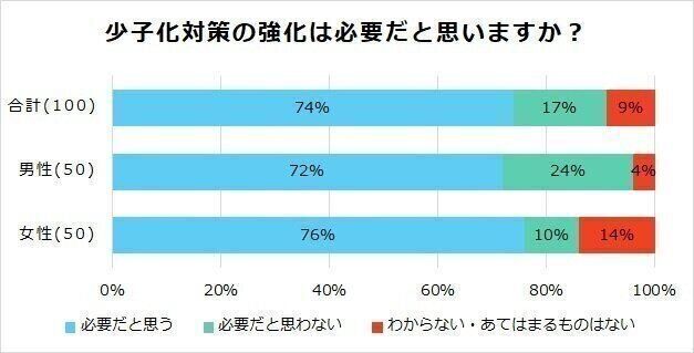 少子化対策の強化は必要だと思いますか?―「必要だと思う」74%