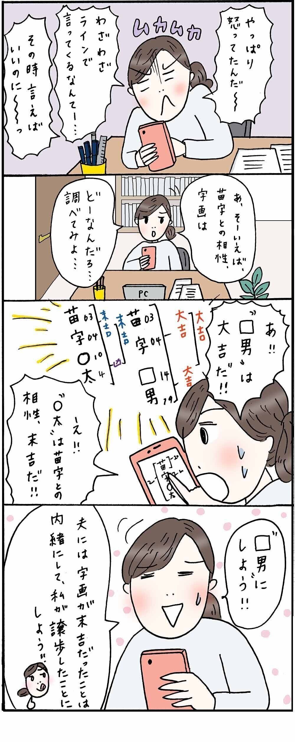 最終的に、字画占いの結果で、夫の考えた名前の方が良かったので