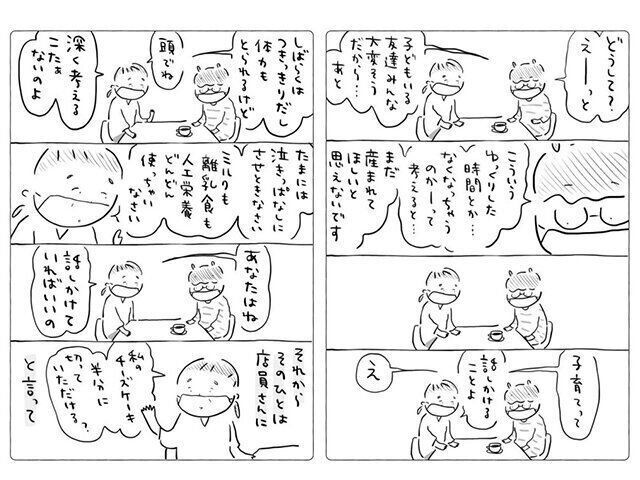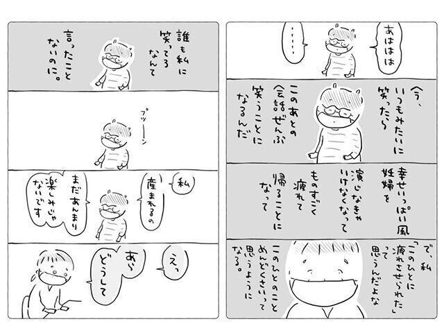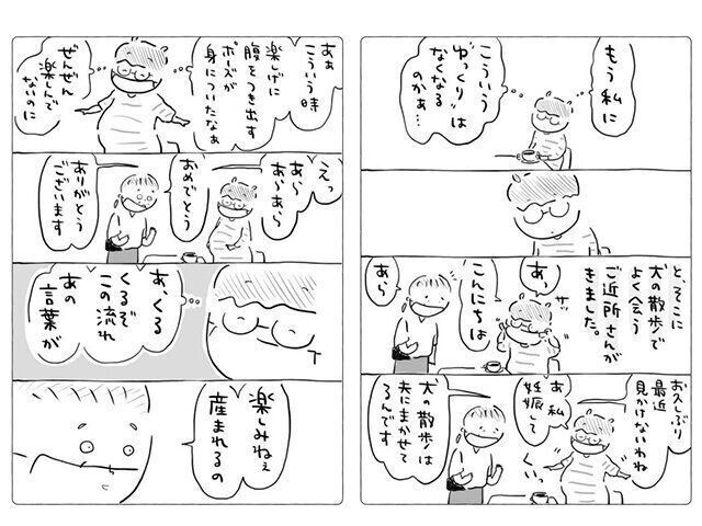 「生まれるのが楽しみじゃない」と思い切って本音を打ち明けても「そんなこと言わないで!」「生まれてくる子がかわいそう」と言われそうでなかなか人に相談できませんよね……。ご近所さんが否定せずに話を聞いてくれておおがさんはとても気持ちが救われたのではないでしょうか。
