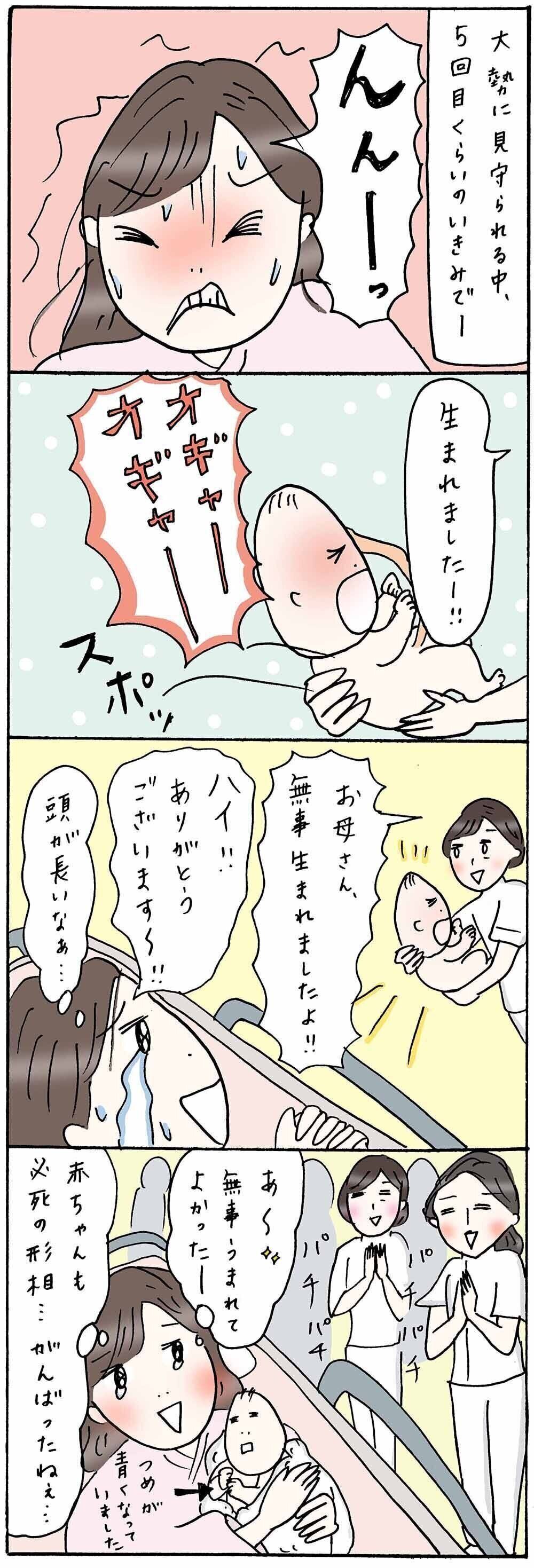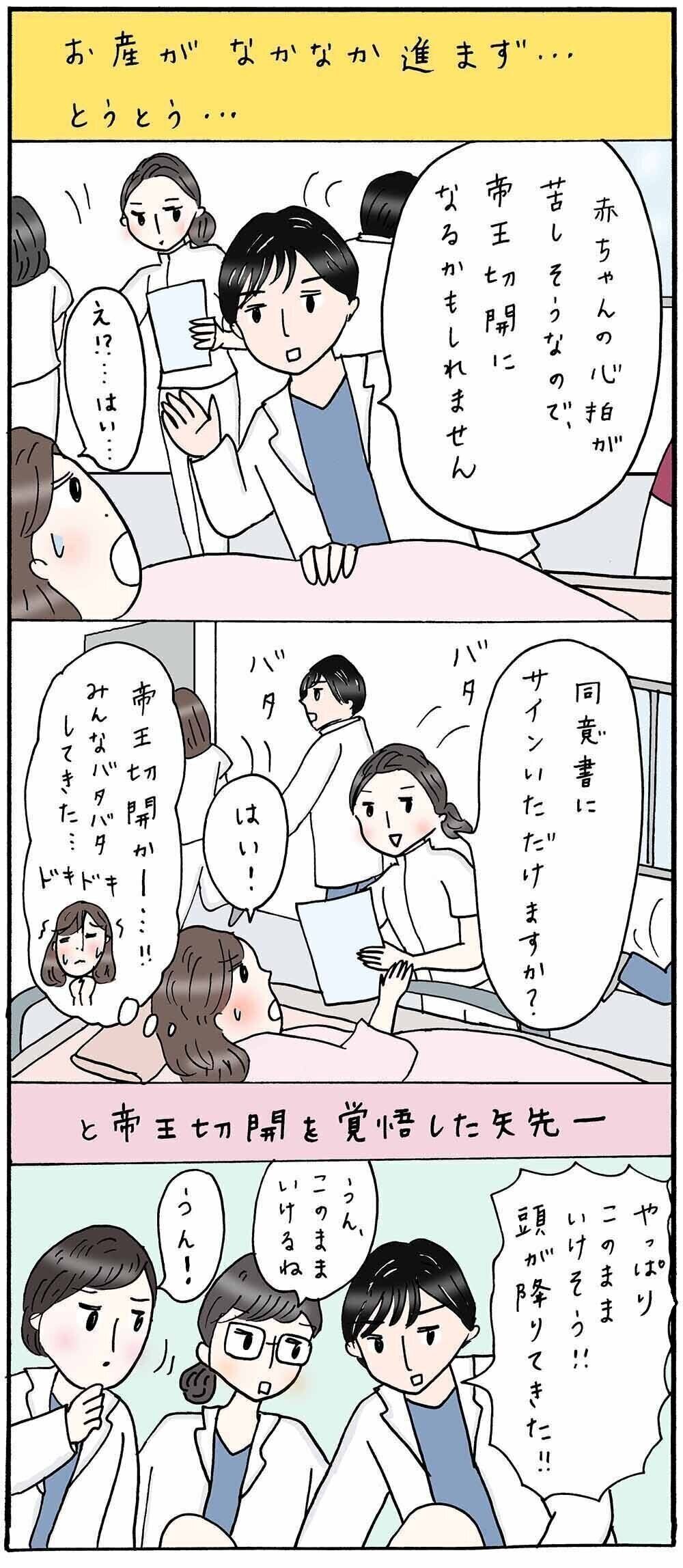 赤ちゃんの頭が降りてきて、このままいける、となり、無事出産しました。
