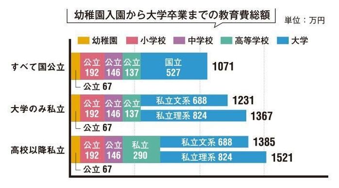 A.すべて国公立でも1000万円以上。貯蓄は300万~500万円を目安に