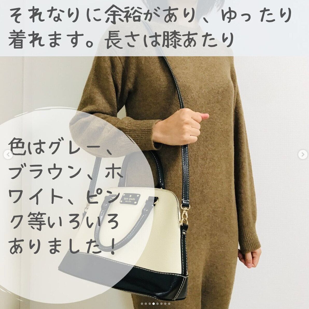 こちらはキッズ用のGIRLS スフレニットワンピース(160サイズ)。あんりママさんの身長は166cmだそうですが、160サイズでも余裕があってゆったり着られたとのこと。長さは膝あたりだそうですよ。シンプルで着回しにもバッチリですね。