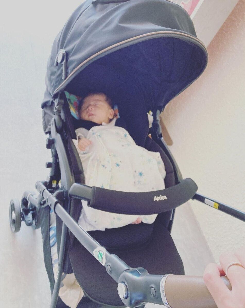 yukaさんはコンビのメチャカル ハンディを購入したそうです。持ち上げる場面が多いので、軽さをポイントにチョイス。「とても軽くて持ちやすくて気に入ってます」と大満足なんだとか。赤ちゃんも気持ちよさそうに寝ていますね。