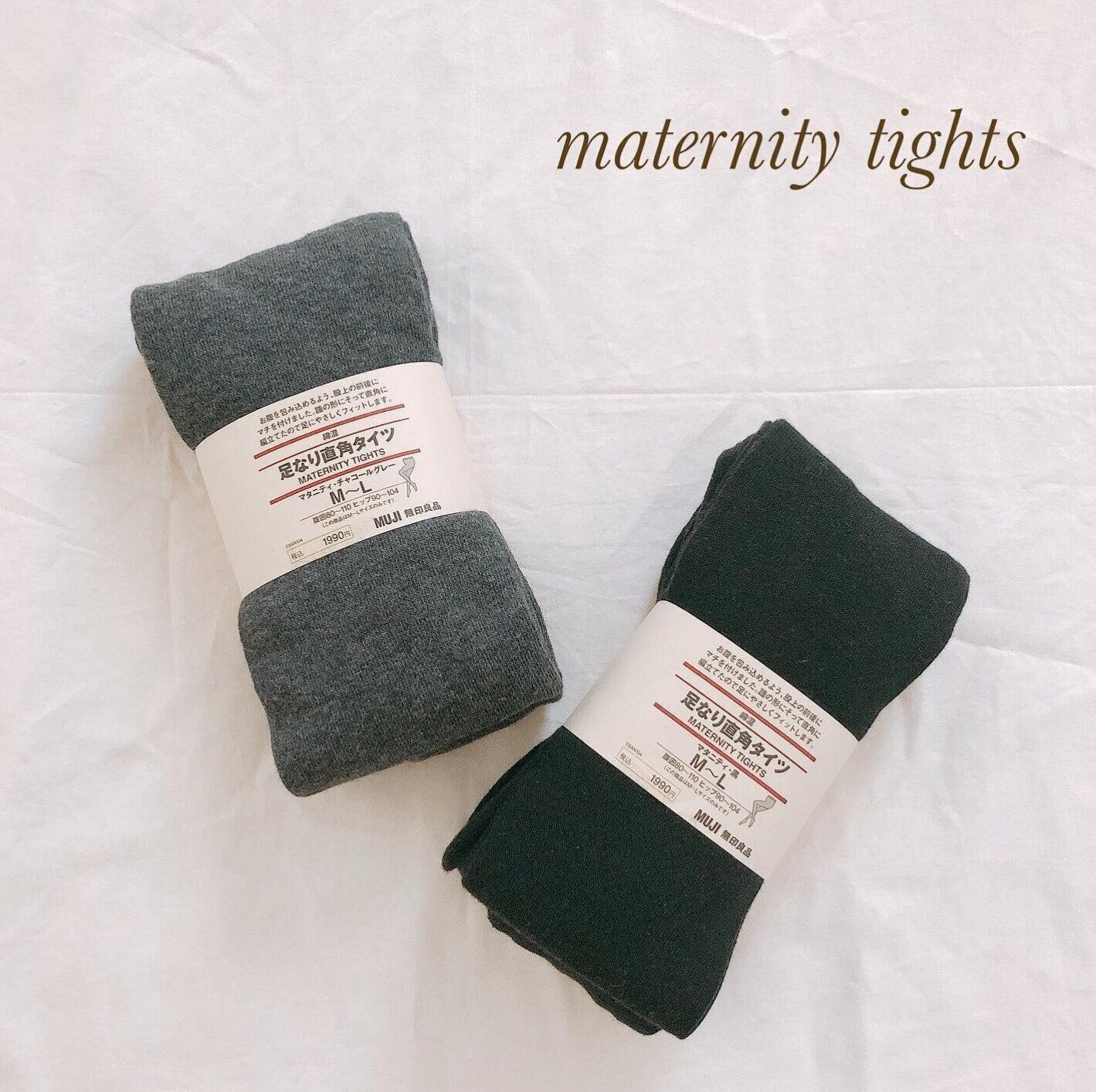 sayaさんは無印良品の「足なり直角タイツ」をマタニティタイツとして愛用!ワンピースに合わせて使っているそうです。生地が伸びるのでお腹周りが苦しくなく、履き心地も良いとのこと!