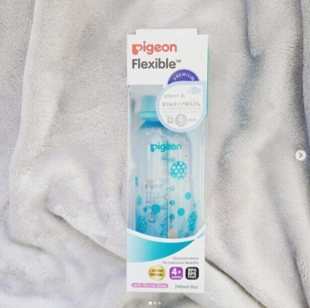 tsugumiさんが購入したのはピジョンの「スリムタイプ 哺乳びん」。スリムタイプは手が小さくても持ちやすく、持ち運びも楽なのだとか。さらに、まとめて消毒することもできるそうです。ブルーの色がかわいい哺乳びんですね。